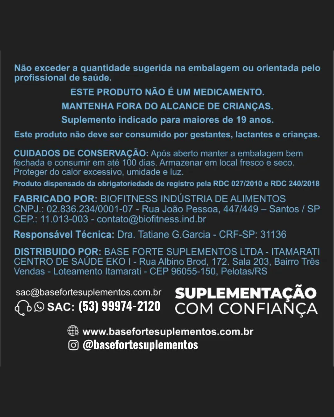 Nossa fórmula é 100% pura, produzida com tecnologia avançada e processos de qualidade que dispensam o uso de antiumectantes. O resultado é um suplemento diferenciado, com máxima pureza e eficiência.